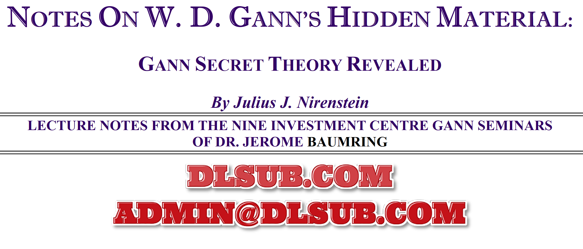 store.cashcowtraders.com - /trading-course-images/J/Julius Nirenstein - Notes On W.D. Gann's Hidden Material (The Complete Gann I-IX Lecture Notes) $1500/